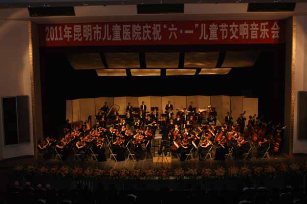 晚上8点,庆祝“六·一”儿童节交响音乐会在昆明剧院隆重举行。省市有关部门领导、省市医疗机构的领导、新闻媒体朋友、省市儿科专家和鱼虾蟹游戏职工共同观看了音乐会,昆明聂耳交响乐团应邀参加表演。