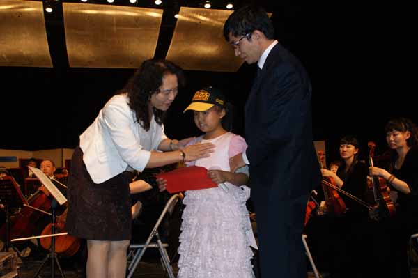 晚会上“绿叶爱心”行动——贫困白血病儿童救助项目向第一批捐助善款的单位及爱心人士表示了感谢,并呼吁社会各界人士参与到这项活动中来。吴院长还代表项目组向“绿叶爱心”行动第一个受益者董玫捐赠2万元的治疗费,帮助她早日康复。