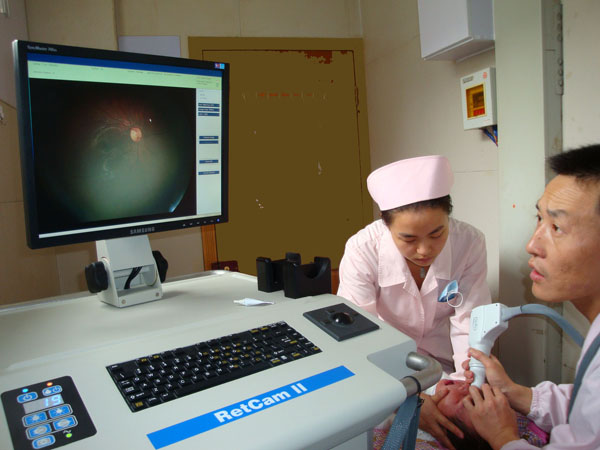 早产儿视网膜病变(ROP)是未成熟儿或低出生体重婴儿的增殖性视网膜病变,其患病率在早产儿中约为15%,其中约3~5%的患者需要治疗,否则将导致严重视力障碍或失明。国外报道约1/3的盲童为本病所致。近年来,随着新生儿急救医学的进步,我国早产儿及低出生体重儿的抢救成功率大大提高。2000年以后,中国的ROP发生率开始明显增加,且由于我国人口基数大,每年全国有近180万早产儿出生,其中有30余万早产儿面临发生ROP的风险。2004年国家卫生部将出生体重<2000克的早产儿列为ROP高发对象,要求加强防治。目前,昆明市每年有5万新生儿出生,其中有早产儿约3500人,这些早产儿均应得到相应的ROP筛查,范围如扩大到全云南省,ROP的防治任务就更重了。视网膜母细胞瘤是儿童最常见的眼内恶性肿瘤。发病率为2万分之一,89%发生于3岁以前,此类恶性肿瘤进展较快,常沿视神经侵入颅内导致颅内恶性肿瘤转移。早期发现可行激光或冷冻治疗,若形成晚期病变则需要摘除眼球甚至导致患儿死亡。早期病变可无症状,当家长发现患儿出现“白瞳症”时多已进展至中期。因此,常规进行婴幼儿眼底检查可以早期发现并治疗视网膜母细胞瘤,挽救生命、保留眼球甚至保留一定有效视力,提高患儿未来的生存质量。除以上两种疾病以外,婴幼儿还可能出现多种先天性视网膜病变,如视网膜血管瘤、Stargardt病、Best病、视网膜劈裂症、Coats病、转移性眼内炎、原始玻璃体增生症、先天性黄斑缺损、牵牛花综合症等,这些疾病早期从外观多不能发现。因此,常规开展小儿视网膜检查是非常必要而且必需的。