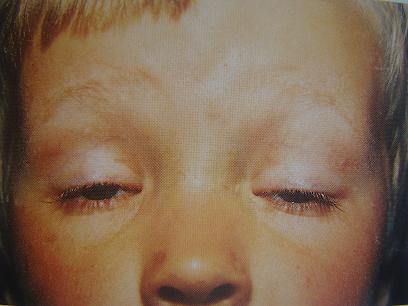 5、先天性上睑下垂:由于先天发育畸形所致的上睑部分或全部不能提起,遮挡部分或全部瞳孔者称上睑下垂。主要症状为:出生时即存在单眼或双眼睁不大的症状,可有皱额、耸眉、仰头视物等现象。如上睑下垂较重遮挡瞳孔时有可能引发弱视。单眼重度上睑下垂比双眼重度上睑下垂更需警惕弱视的发生。根据患者的眼睑下垂程度选择不同的手术年龄和手术方式可取得较好的疗效。