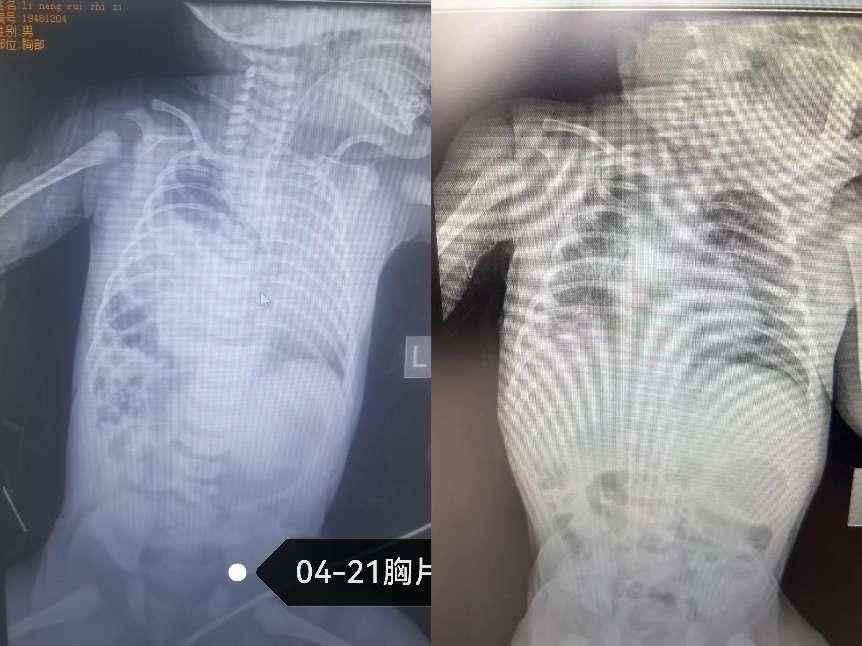 然而,命运似乎给这个家庭开了一个残酷的玩笑。孩子在曲靖第一人民鱼虾蟹游戏顺产后,由于肝脏及肠管疝入右侧胸腔,右肺受到严重压迫且发育不良,出生后不久就出现了青紫和呼吸困难的症状。尽管产院立即给予了呼吸机辅助通气治疗,但症状并未得到缓解。在生后的7小时余,睿睿被紧急转入我院,入院后立即采取了高频呼吸机辅助通气、一氧化氮吸入等治疗措施。