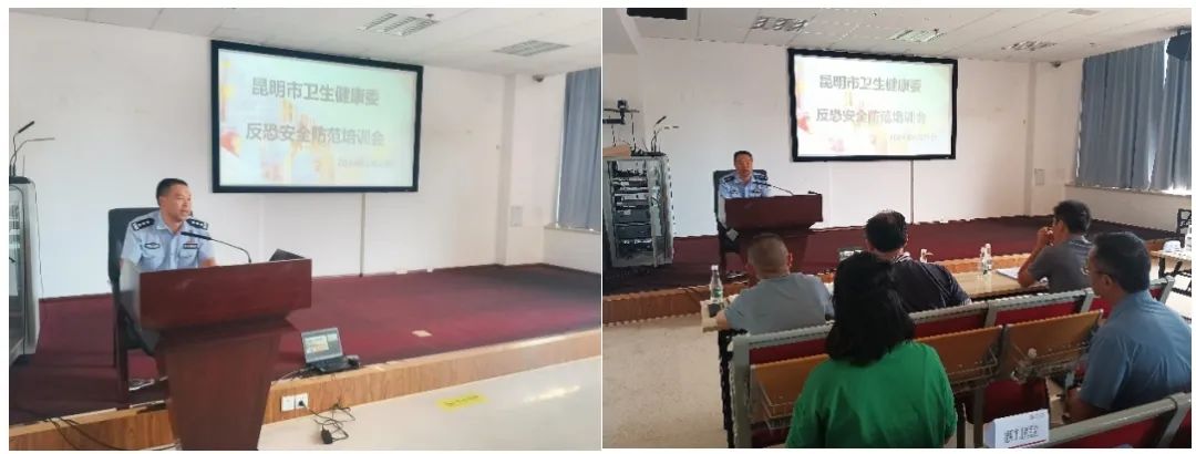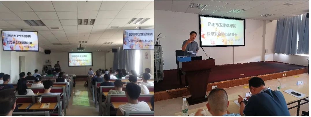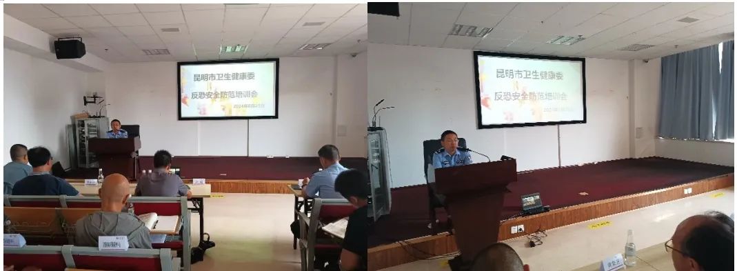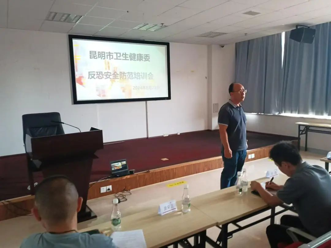 为扎实推进卫生健康系统反恐怖安全防范专项工作,依据昆明市卫生健康委的安排部署,鱼虾蟹游戏中心 于 2024 年 8 月 23 日 14 时 30 分在前兴院区召开了反恐怖安全防范工作培训会。此次会议由昆明市卫健委应急处处长刘源主持,特邀昆明市反恐办杨龙大队长、昆明市公安局经文保分局泰黎品警长、前卫派出所所长仲林以及鱼虾蟹游戏中心 保卫科郑钧瑞出席。会议对全市医疗系统 18 家鱼虾蟹游戏单位反恐怖科室负责人及具体负责同志进行了反恐怖安全防范培训。
