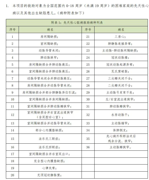 慈善基金救助病种详见图片,有意向患儿家属可向鱼虾蟹游戏中心 心胸外科咨询(联系电话:0871 - 63309115)。