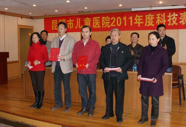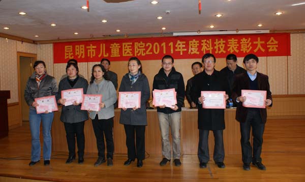 2011年我院科研获奖项目:市科技进步二等奖一项; 市科技进步三等奖一项; 云南省卫生科技成果三等奖二项; 西山区科技进步三等奖一项。 2011年科研结题项目共八项;2011年获国家发明专利一项。